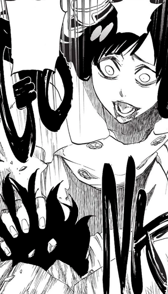 Yumichika, entendant cela, réplique que cela a dû la faire bander. Ignorant la remarque de ce dernier, la Stern Ritter ajoute cependant que pour les Shinigamis, un simple contact de son sang avec leur peau suffit à les transformer et demande lequel d’Ikkaku ou Yumichika veut être transformé en premier. C’est alors que Mayuri débarque avec son vêtement ultra-lumineux, accompagné de Nemu. Visiblement intéressé par le pouvoir de Gigi, il abaisse ensuite la luminosité de son uniforme tandis que Bambietta réclame quelque chose à Giselle. Celle-ci la gifle sans attendre, lui disant qu’elle est impatiente et aura sa récompense quand tout sera fini. Giselle envoie ensuite Bambietta, en Vollständig, bombarder Mayuri. Celui-ci, tenu par Nemu, observe la vitesse des bombes et demande à sa vice-capitaine de déployer des sphères en les réglant sur 3 secondes. La salve de Bambietta touche alors les sphères et n’explosent pas immédiatement.