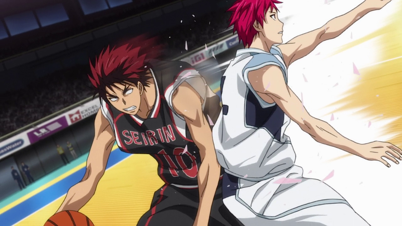 Izuki a le ballon et passe la balle à Kuroko qui effectue un alley-oop à Kiyoshi tout en esquivant le périmètre de défense d’Akashi. Mais ce dernier intercepte quand même le ballon, empêchant son adversaire de faire un dunk. Il mène alors une nouvelle contre-attaque mais subit un double marquage de Kagami et Kuroko. Voyant que Kuroko est derrière, il se dit que celui-ci ne pourra jamais suivre leurs mouvements et se débarrasse de Kagami. Mais il tombe nez-à-nez avec Kuroko qui parvient à lui voler le ballon. En fait, celui-ci avait deviné où Akashi allait se diriger rien qu’en voyant Kagami aller dans la direction opposée.