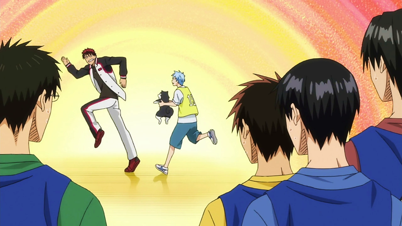 Kuroko continue avec ses passes invisibles , conduisant vers la victoire des étudiants de première année . Les autres joueurs s'ont étonnés sur la capacité de Kuroko et Riko est capable de l'analyser . Kuroko gagne l'attention de Kagami . Les premières années étaient encore à un point derrière les 2èmes années et quand Kuroko vole un ballon au seconde année ,Kagami en colère apparaît derrière Kuroko et il dunks le ballon marquant leur première victoire. Ce soir-là , Kuroko et Kagami se réunissent à nouveau à au Maji Burger , avec Kagami qui s'énerve parce qu'ils se rencontrent encore une fois . Kagami donne Kuroko un de ses hamburgers , lui disant qu'il le reconnaît . Kagami demande à Kuroko ce que représente la force de la génération . Kuroko répond que lorsque Kagami irait se battre contre eux maintenant, il serait immédiatement battu . Il dit qu'ils sont tous allés dans des écoles différentes . Kagami crie sa détermination , en battant la génération des Miracles et Kuroko dit que c'est peu probable . Pourtant , Kuroko dit qu'il a trouvé sa détermination ainsi . Il dit qu'il va faire de Kagami le plus fort du Japon .