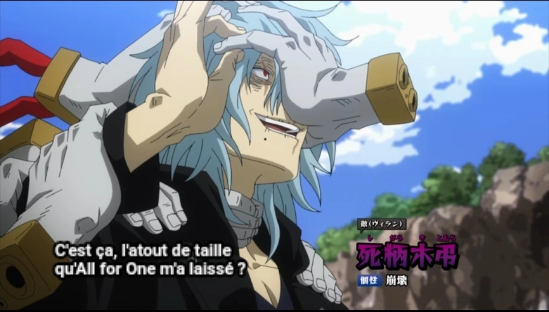 Ayant détruit la main de son père, Tomura se souvient de chaque détail de son passé et considèra ne plus avoir besoin des mains qu'il portait sur son corps. Tomura parvint à éviter l'attaque de "Stress 100%" de Re-Destro et parvint à désintégrer sans problème les vrilles d'énergie de ce dernier, détruisant au passage la plupart des bâtiments environnants.