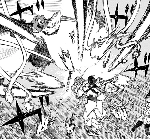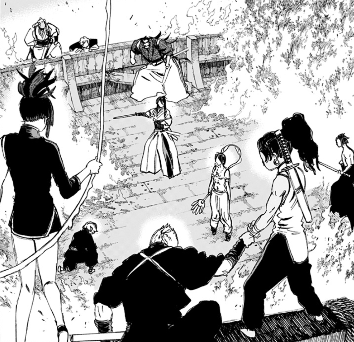 Gabimaru s'immole par le feu et envoie plusieurs attaques de ninjutsu enflammées vers Rokurōta qui le dévie vers les arbres. Gabimaru explique qu'il voulait délibérément que Rokurōta détourne les attaques pour provoquer un incendie de forêt afin qu'il puisse le faire suffoquer à cause de la fumée. Une fois que Rokurōta se met à genoux, Sagiri entre pour le décapiter tandis que Gabimaru le retient. Sagiri se concentre et fait la coupe. Après avoir décapité Rokurōta, Sagiri tient sa tête et repose son âme. Avant de partir avec Gabimaru, Sagiri pense à Genji mais se dit qu'elle doit rester forte.