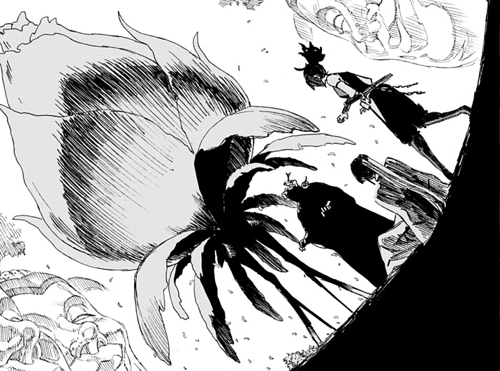 Après le combat, les deux rencontrent une étrange créature de poisson qui se prépare à attaquer. Gabimaru dit à Sagiri de rester en arrière et s'engage dans la bataille. Cependant, la créature le bouscule et Gabimaru pense qu'il serait préférable pour eux de fuir. Avant qu'ils ne puissent trouver une fenêtre d'opportunité pour s'échapper, ils sont entourés de créatures plus grandes et étranges. Croyant qu'il n'y avait pas d'issue, Gabimaru massacre la horde. Sagiri regarde avec horreur et devient bouleversée en réalisant à quel point sa vie a changé lorsqu'elle est arrivée sur l'île. Elle remarque alors qu'elle est sur le point d'être attaquée par derrière, mais Gabimaru parvient à la sauver inconsciemment. Sagiri remercie Gabimaru de l'avoir sauvée mais a soudainement la tête enveloppée par l'un des tentacules des créatures.