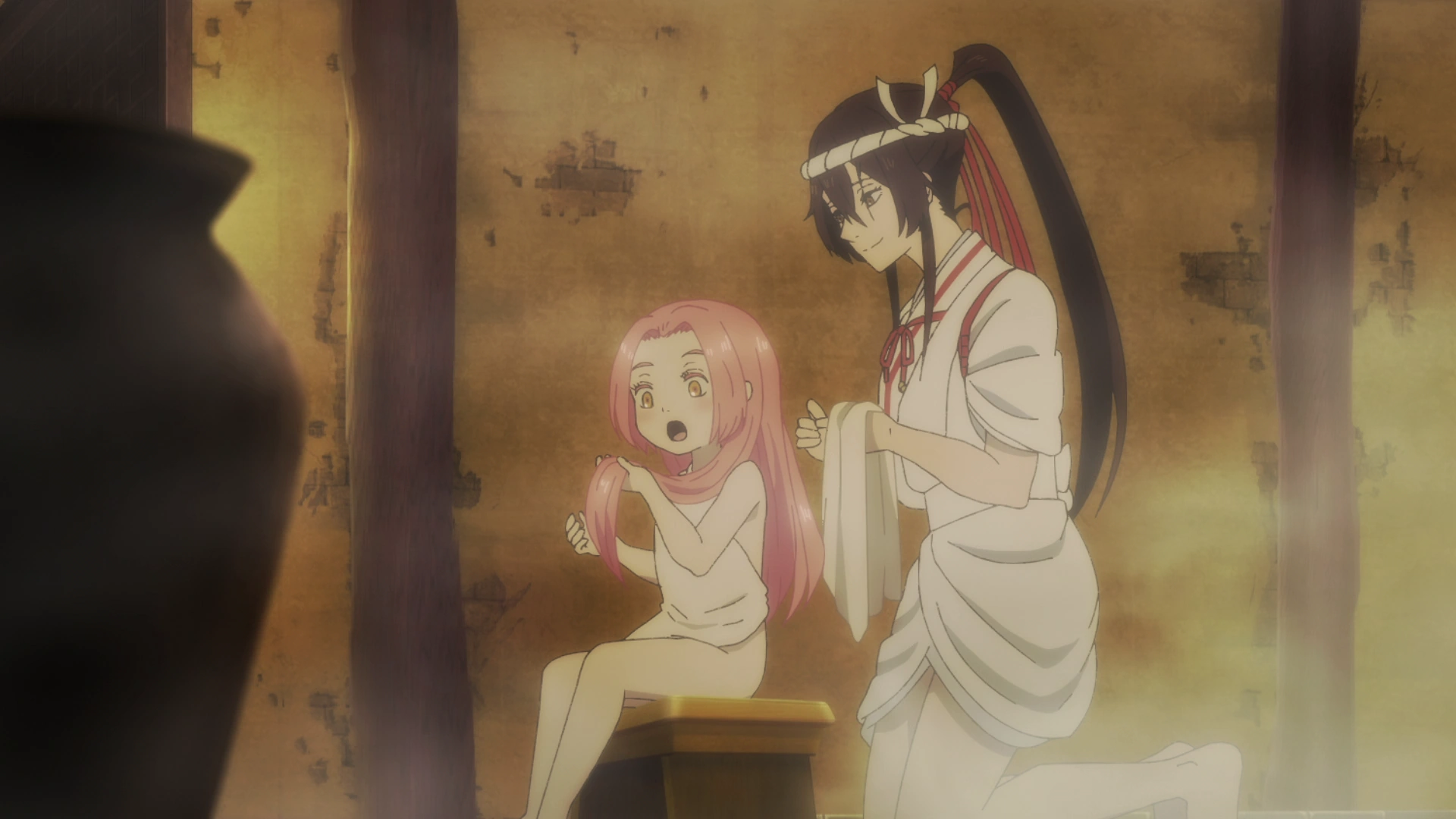 Plus tard, Sagiri suit Gabimaru au bain et discute s'ils doivent faire confiance à Mei et Hōko .. Une fois entrés, ils entrent accidentellement sur Mei déshabillés. Sagiri est choqué une fois que Gabimaru se déshabille après avoir expliqué qu'il avait l'habitude de se baigner avec les gens de son village. Elle remarque que Gabimaru est blessé par derrière et Mei a une étrange marque sur le dos. Elle prépare ensuite un bon bain pour eux deux et lave Mei. Après avoir remarqué que Mei essayait de cacher son marquage, Gabimaru lui conseille de ne pas essayer de le cacher et l'apparence n'a pas d'importance. Sagiri devient abasourdi avec Gabimaru montrant des signes de respect. Après avoir fini de se baigner, les trois marchent vers le logement. En marchant, Sagiri commence à remarquer que la personnalité de Gabimaru commence à changer. Une fois arrivés, Sagiri voit que Senta s'est épuisé à rassembler des recherches et lui dit qu'il devrait se reposer pendant qu'elle monte la garde. Senta insiste pour qu'il s'en tienne à son travail et reste à l'affût pour la nuit avec Gabimaru à ses côtés. Cependant, Senta finit par s'endormir et donne à Gabimaru l'opportunité de se rendre seul à Hōrai.